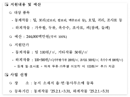 - 동계작물: 2025년 2월 1일 ~ 3월 31일