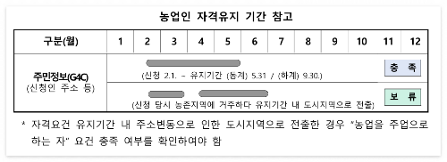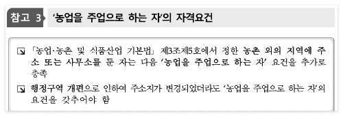 - 농촌 주소자 or ‘농업을 주업으로 하는 자’ 요건 충족