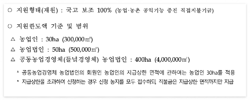 - 직불금 지급: 11월~12월 중, 농가 계좌로 입금