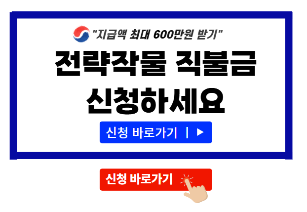 최소 50만원에서 최대 600만원까지 현금으로 받을수 있는 전략작물 직불금 지금 바로 신청하세요!